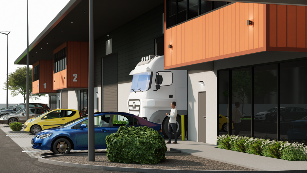A proposed block of units combining factory and office space to support efficient day-to-day operations.